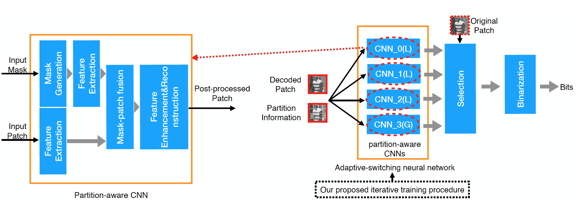 Proposed a novel CNN utilizing partition information in video encoder to enhance compressed videos (deblocking). Achieved about 10% bitrate saving on benchmark sequences. Paper accepted by ICIP 2019 (oral) and won 2nd prize in ChinaMM 2018 challenge.